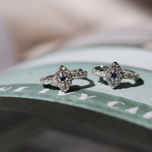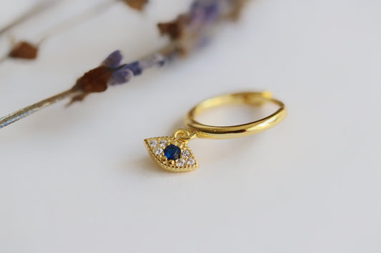 Sterling Silver Evil Eye Hoop Earrings| Cartilage Helix Huggies