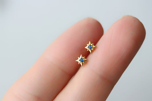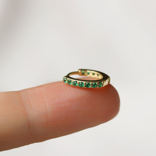 Sterling Silver Sapphire CZ Huggie Earrings • Minimalist Dainty Hoops • Wedding Bridesmaid Blue CZ Pave Tiny Hoops Earrings Gift for Her