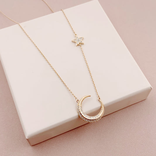 Regular price £16.50 GBPRegular priceUnit price / perSale price £16.50 GBPStar to the Moon Necklace, CZ Pave Moon Star Pendant, Gold Delicate Crescent Moon Necklace, Water Proof Minimalist Jewelry / Gift For Her