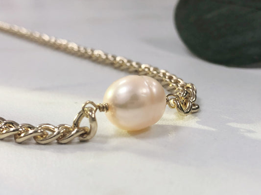 Retro Gold Pearl Choker Necklace, Vintage Chain Necklace, Statement Pearl necklace, Chunky gold chain, Christmas gift for her