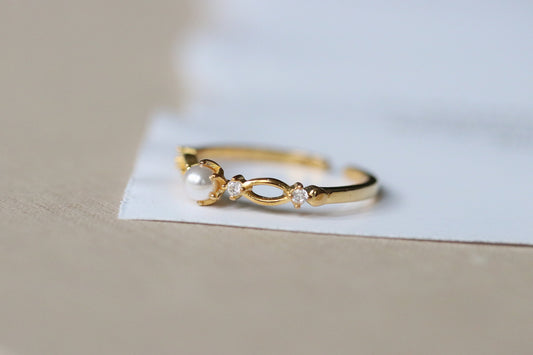 Regular price £10.50 GBPRegular priceUnit price / perSale price £10.50 GBPMinimalist Pearl Stacking Bridal Ring, 18k Gold Plated Stackable Pearl Ring, Dainty Ring, Waterproof Dainty Lace Ring, Gift for Her