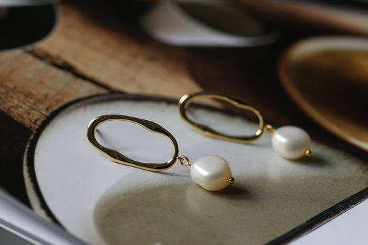 Regular price £14.50 GBPRegular priceUnit price / perSale price £14.50 GBPGold Irregular Pearls Hoop Drop Earrings