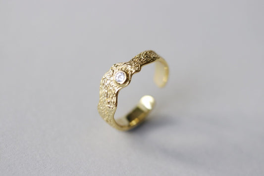 Regular price £25.00 GBPRegular priceUnit price / perSale price £25.00 GBPGold Textured Ring with Bezel-Set Diamond
