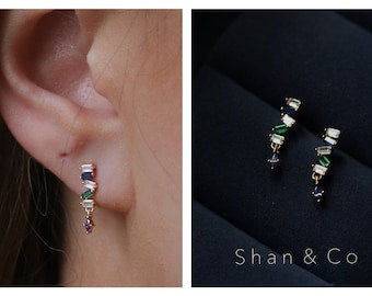 Sliver Rainbow Crystal Zirconia Stud Earrings