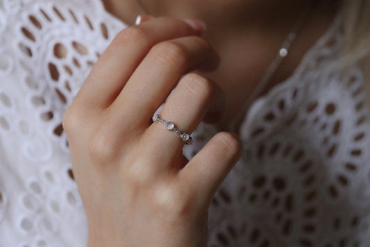Regular price £25.00 GBPRegular priceUnit price / perSale price £25.00 GBPSilver Moonstone Dotted Ring