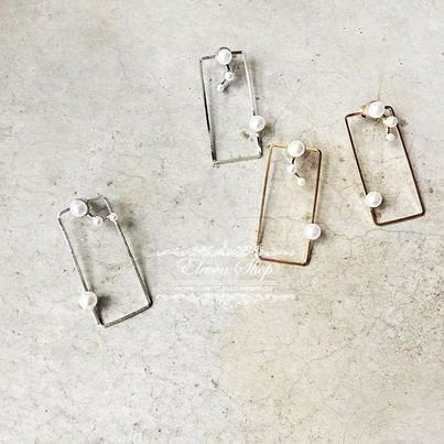 Gold Statement Rectangle Hoop Earrings with Pearl Detailing, Stylish Rectangle Earrings, Classy Pearl Earring, Gift for her, Party Earring
