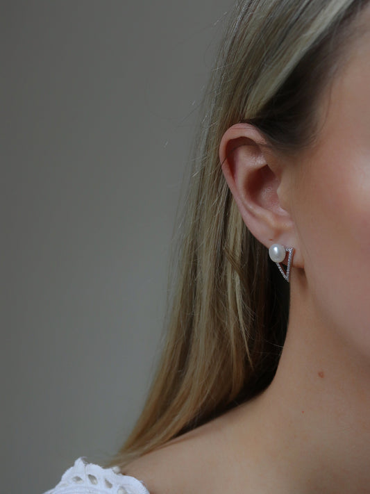 Regular price £12.50 GBPRegular priceUnit price / perSale price £12.50 GBPGold Triangle Pearls Earrings, Silver Staple Stud Earrings, Silver Geometric CZ Earrings, Minimalist Earrings, Geometric Studs, Gift for Her