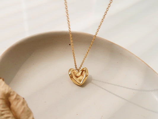 Gold Geo Love Heart Pendants