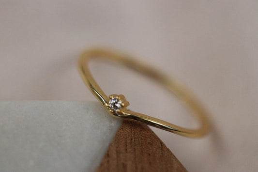 Gold Petite Flower CZ Ring