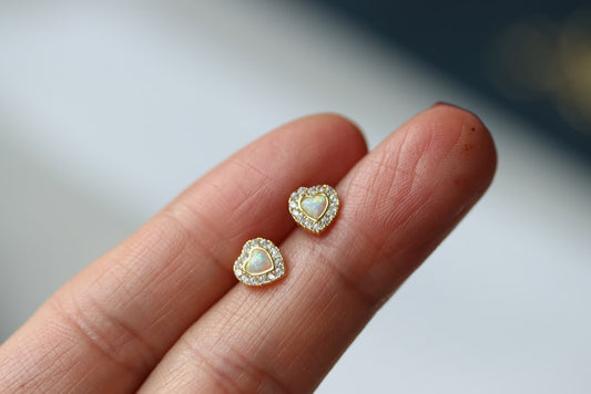 Gold Opal Heart Stud Earrings