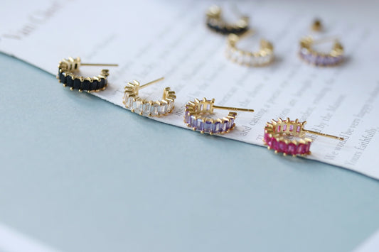Regular price From £10.00 GBPRegular priceUnit price / perSale price From £10.00 GBPGold Plated Clear Baguette Hoop Earrings
