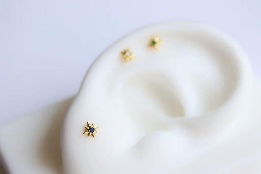 Regular price £11.95 GBPRegular priceUnit price / perSale price £11.95 GBPGold Starburst Screw Emerald Earrings