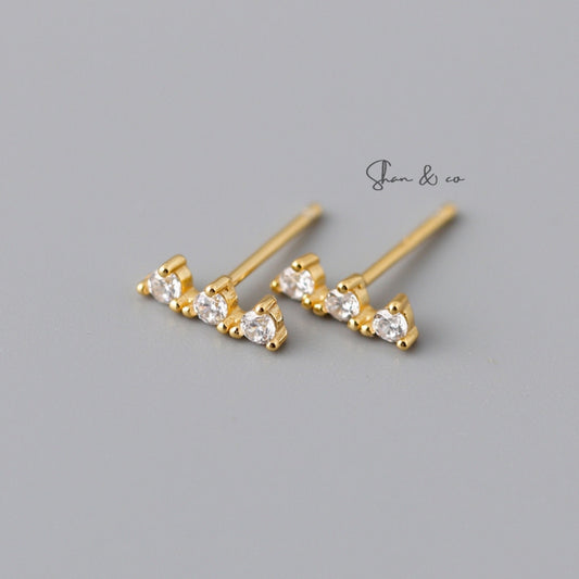 Gold Vermeil Bar Studs Earrings| Geometric Clear Line Studs
