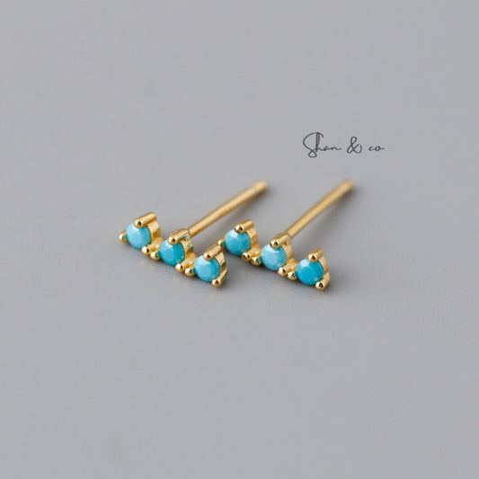 Gold Vermeil Bar Studs Earrings| Geometric Turquoise Line Studs