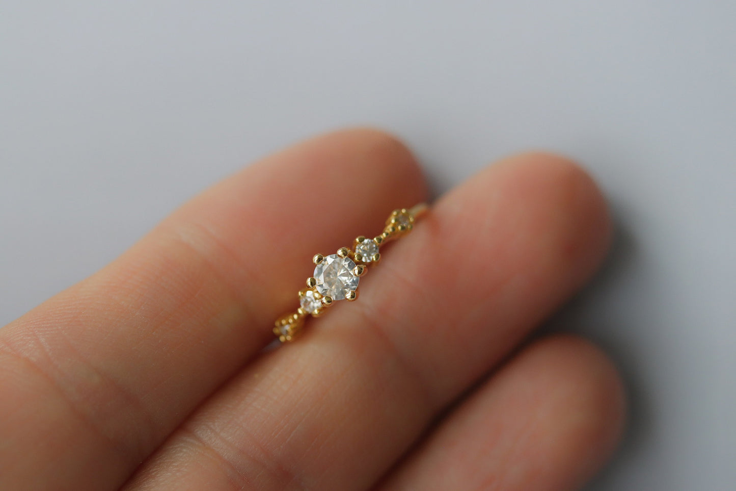 Add timeless elegance to your jewellery collection with our Sterling Silver/Gold Vermeil Round Cut CZ Diamond Ring. This vintage-inspired adjustable ring features a dazzling round-cut cubic zirconia that captures the look of a classic diamond, set in a sleek, minimalist band. Crafted from premium sterling silver or gold vermeil, it offers both durability and a luxurious finish. Perfect for stacking or wearing solo, this adjustable ring is versatile enough for everyday wear or special occasions. Elevate your style with this delicate and sophisticated piece that brings a touch of vintage charm to any ensemble.
